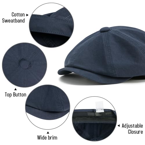 Our retro flat cap features an eight-panel top button design and a cotton sweatband. The visible button and hidden velcro closure provide a snug and adjustable fit, allowing up to 1-2cm of adjustment space. This ensures a secure and comfortable experience for any head size.