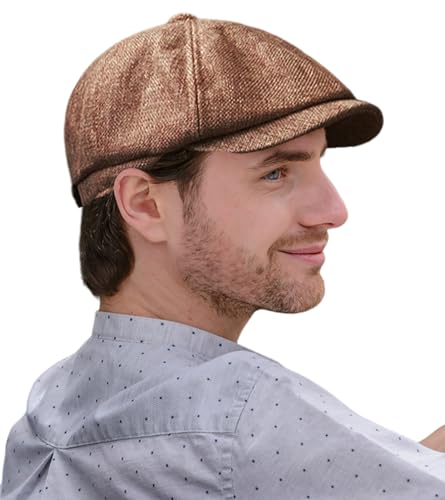 The Traditional, Classic & Vintage Style 8 Panel Herringbone Tweed mens Irish hats are lightweight and feature a button top accent for a chic decoration. Perfect for adding a touch of traditional charm to any outfit.