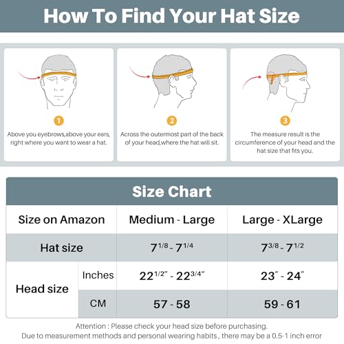 Our men’s flat hats come in two sizes: M/L (57-58cm, 22 1/2-22 3/4 inches) and L/XL (59-61cm, 23-24 inches), ensuring a perfect fit for most head sizes. The built-in sweatband wicks away sweat swiftly, keeping you comfortable all day long.