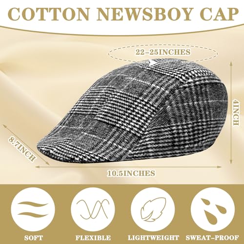 – Designed for a wide range of head sizes, the men’s newsboy hat measures approximately 10.5 inches in length, 8.7 inches in width, 4 inches in height, and 22-25 inches in head circumference.