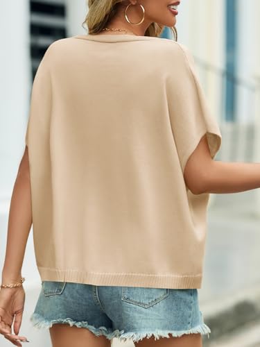 Saodimallsu Womens Summer Oversized Cardigans Casual Knit Sweater Tops | Saodimallsu Summer Lightweight Button V Nec